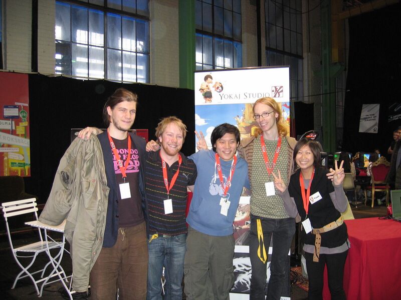 One of four pictures provided by Jens "jeb" Bergensten on the Project Oxeye Wiki Discord. Original caption: In October 2007, Oxeye participated at Spelfest in Malmö. We displayed Harvest, and Daniel and Pontus gamejammed a new shoot-em-up in Multimedia Fusion live. We also met with Yokaj Studios.